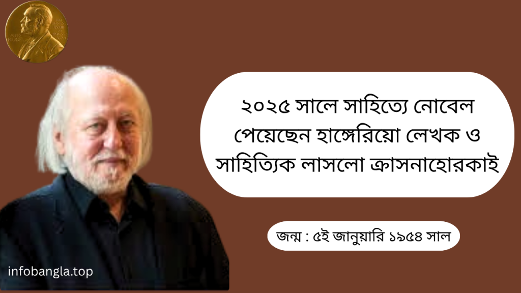 উত্তর: ২০২৫ সালে সাহিত্যে নোবেল পেয়েছেন হাঙ্গেরিয়ো (Hungarian) লেখক ও সাহিত্যিক লাসলো ক্রাসনাহোরকাই (László Krasznahorkai)।